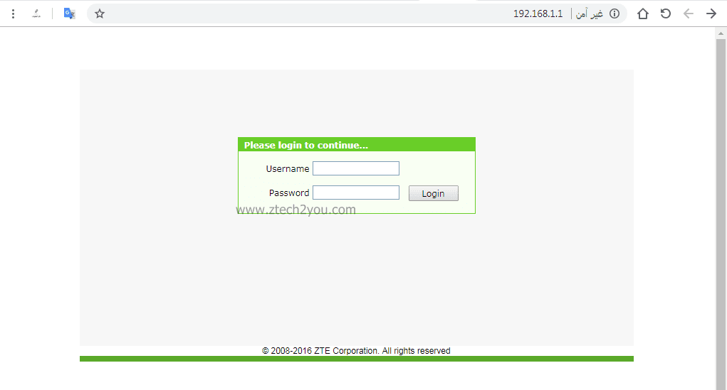 أولاً:: توجه الي إعدادات الراوتر الخاص بك عن طريق فتح متصفحك وكتابة 192.168.1.1 في عنوان البحث ثم الضغط Enter سيتوجه بك الي صفحة الدخول الي اعدادات الراوتر كما بالصورة التالية...