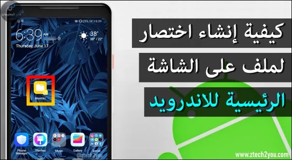 ستجد الان انه تم اضافة اختصار للملف علي شاشة الرئيسية لهاتفك. والذي يمكنك من فتح الملف بشكل مباشر من الشاشة الرئيسية دون الحاجة الي الدخول الي مدير الملفات. ويمكنك حذف لاختصار في اي وقت بالضغط عليه مطولاً، ومن ثم الضغط علي إزالة.